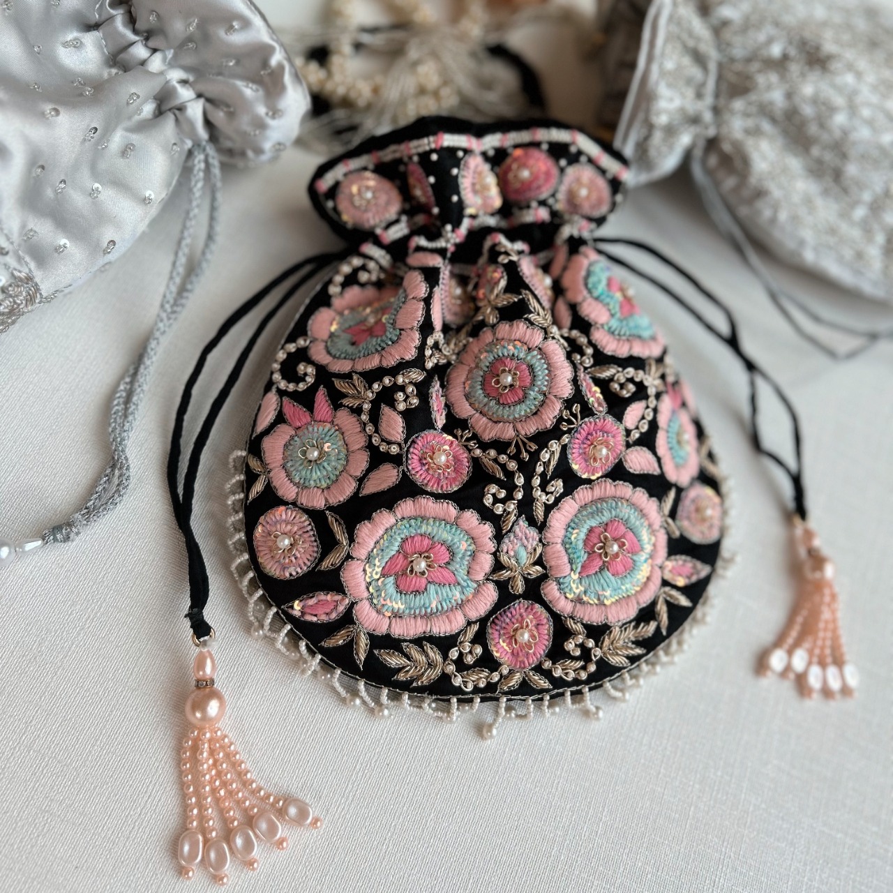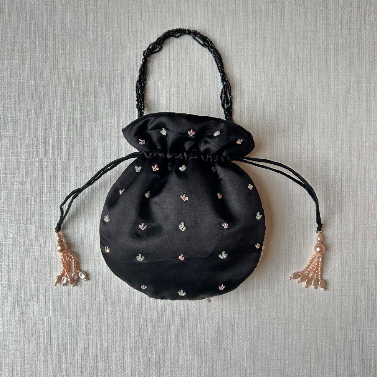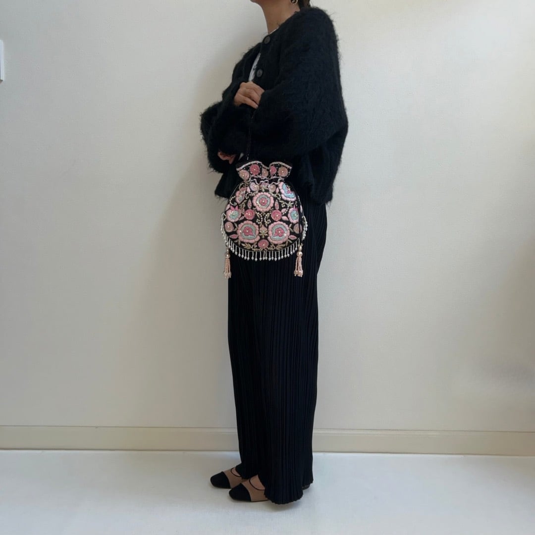<予約販売:発送予定1/15〜>贅沢なカラフルお花刺繍のポトリ【ブラック】