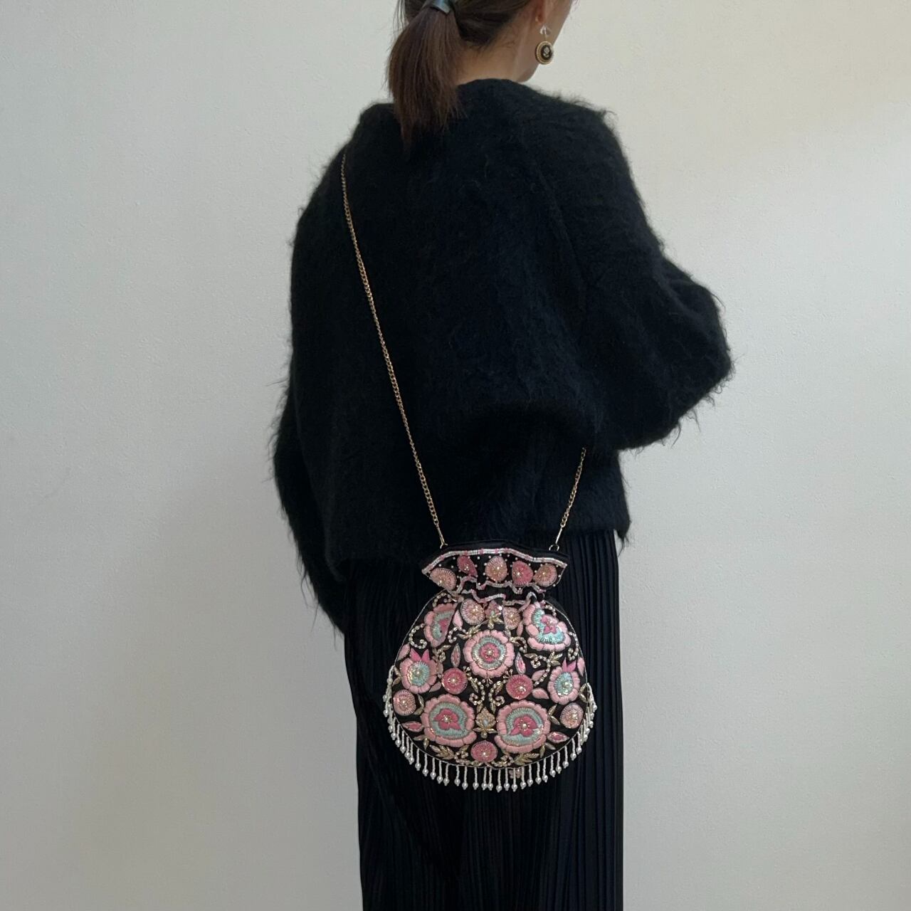 パールビーズのフリンジまで